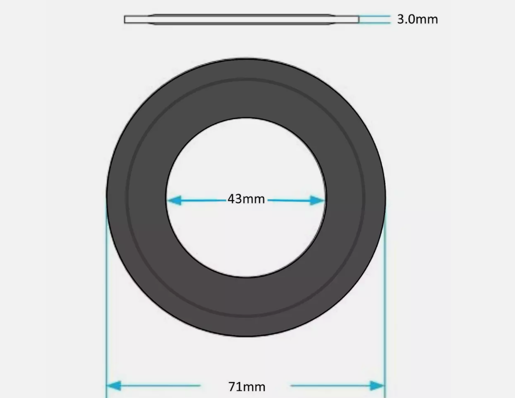 Washer is fatter in the middle than at the edges. Internal diameter 4.3cm – external diameter 7.1cm