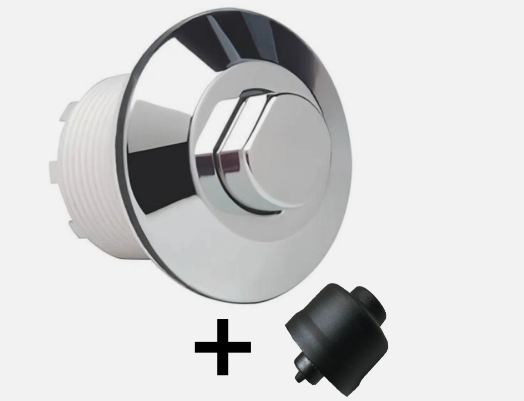Replacement Chrome Toilet Flush Button & Spare Black Rubber Bellow Set Fits Grohe Adagio Cisterns 38488/113219